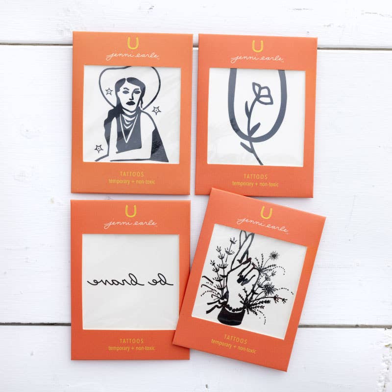 Horseshoe + Flower Temporary Tattoo great western vibes that will delight your customers as a sweet, unexpected add on gift! non-toxic last 5-7 days 1 1/4" X 2 1/2" Waterproof Bravery inducing