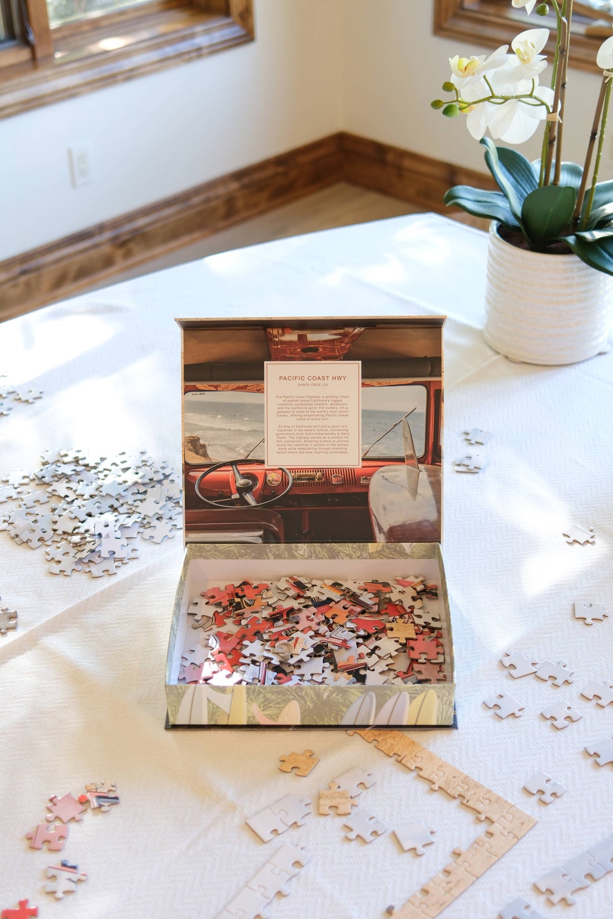 Get ready to cruise the California coast with the Surf Rides Puzzle, a 500 piece puzzle that features stunning photography from our newest book Surf Rides. This high end puzzle is perfect for those who love a challenge and appreciate beautiful art. With its sturdy pieces and vibrant colors, this puzzle is sure to provide hours of entertainment for puzzle enthusiasts of all levels. Puzzle Dimensions 19.75 x 27.5 inches