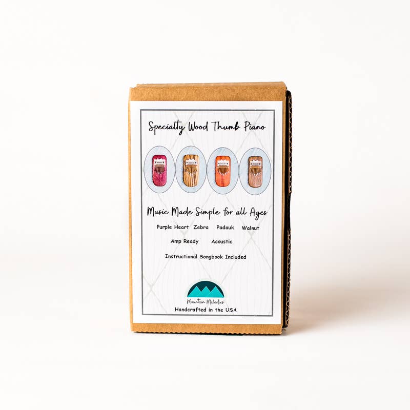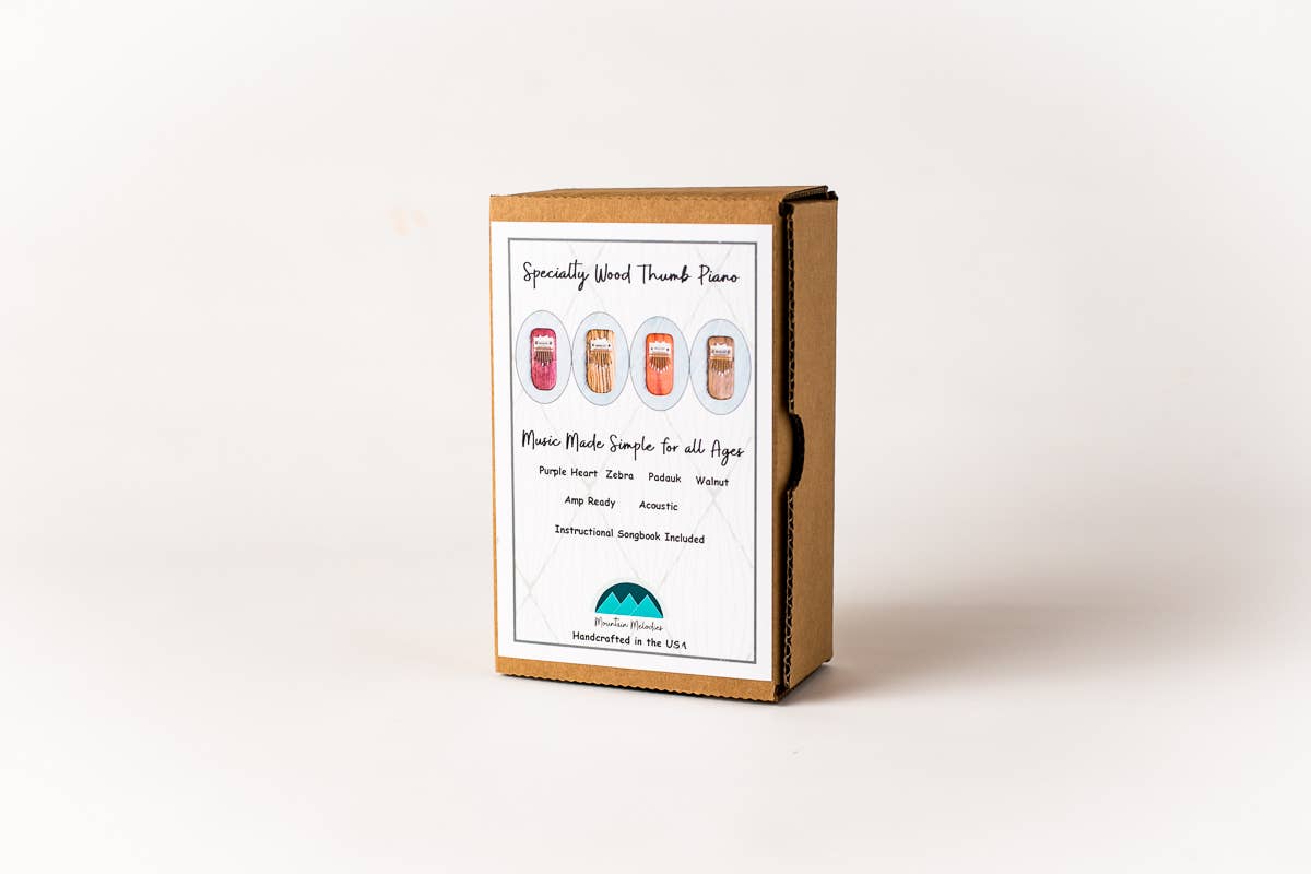 Ease of use combined with the quality only hand made can provide will have you entranced from your first key stroke. Padauk is known as the wood of kings and has a fascinating history. The vibrant orange color and high durability makes the padauk thumb piano an ideal instrument. Instructional songbook included .