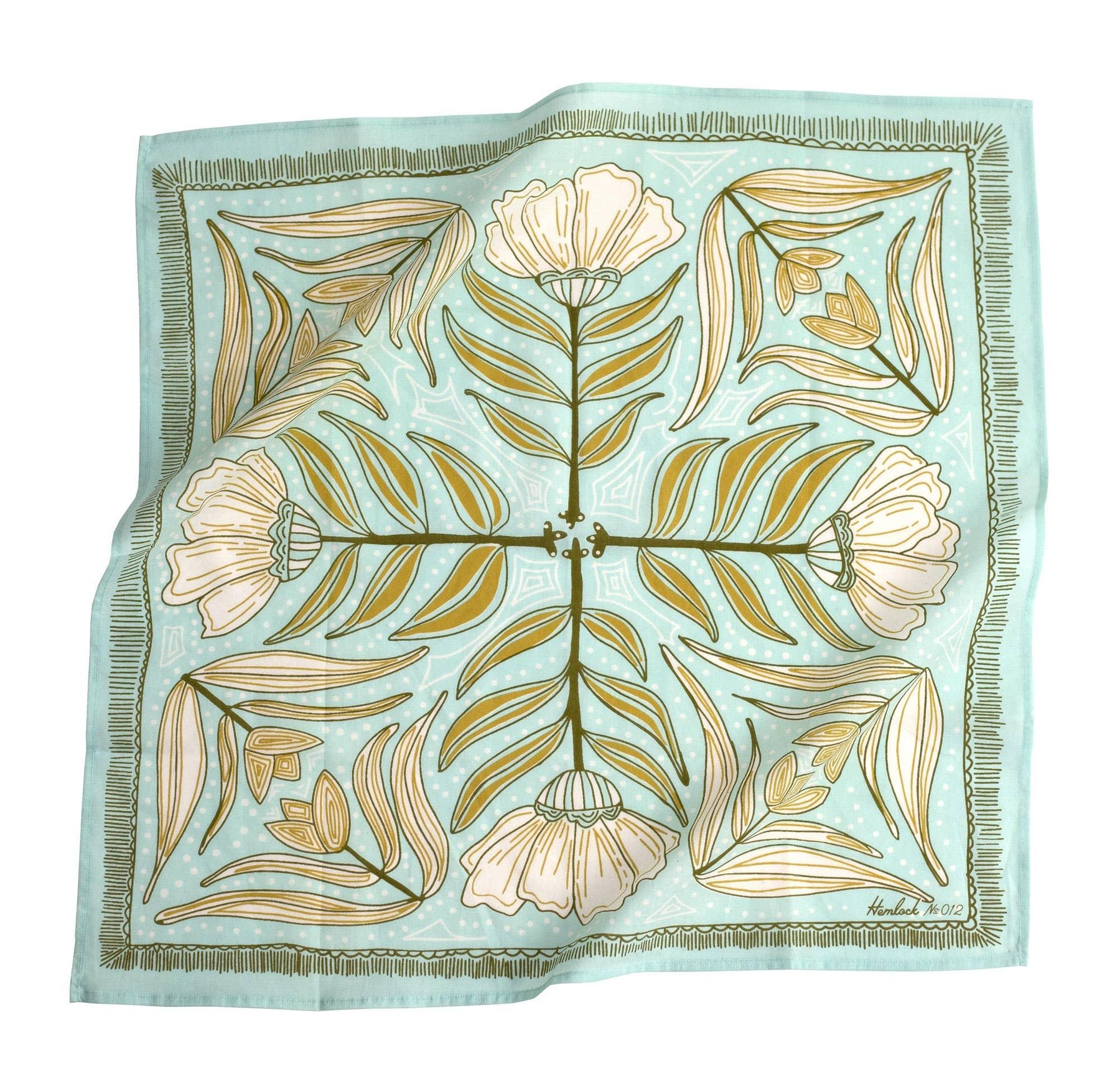 Eliza lives on Gatsby Street in the Art Deco-iest of apartment buildings, and she loves nothing more than long evening walks in the neighborhood with her pup after closing her flower shop for the day. Whether she’s crafting arrangements or keeping up with Fido, a bandana keeps her hair out of her face and truly lets her do all the things. If you love classic Hemlock Goods floral, Eliza’s the girl for you. Color: Light Blue with Yellow Flowers Material: 100% premium cotton Sizing: 22x22 inches Designed in the U.S. Hand screen-printed in India Bandanas can be used in so many different ways! Use it as a handkerchief on hikes, wear it in your hair or on your clothes to spice up an outfit, tie it around your pup's neck to make them look dashing! Have fun with it!