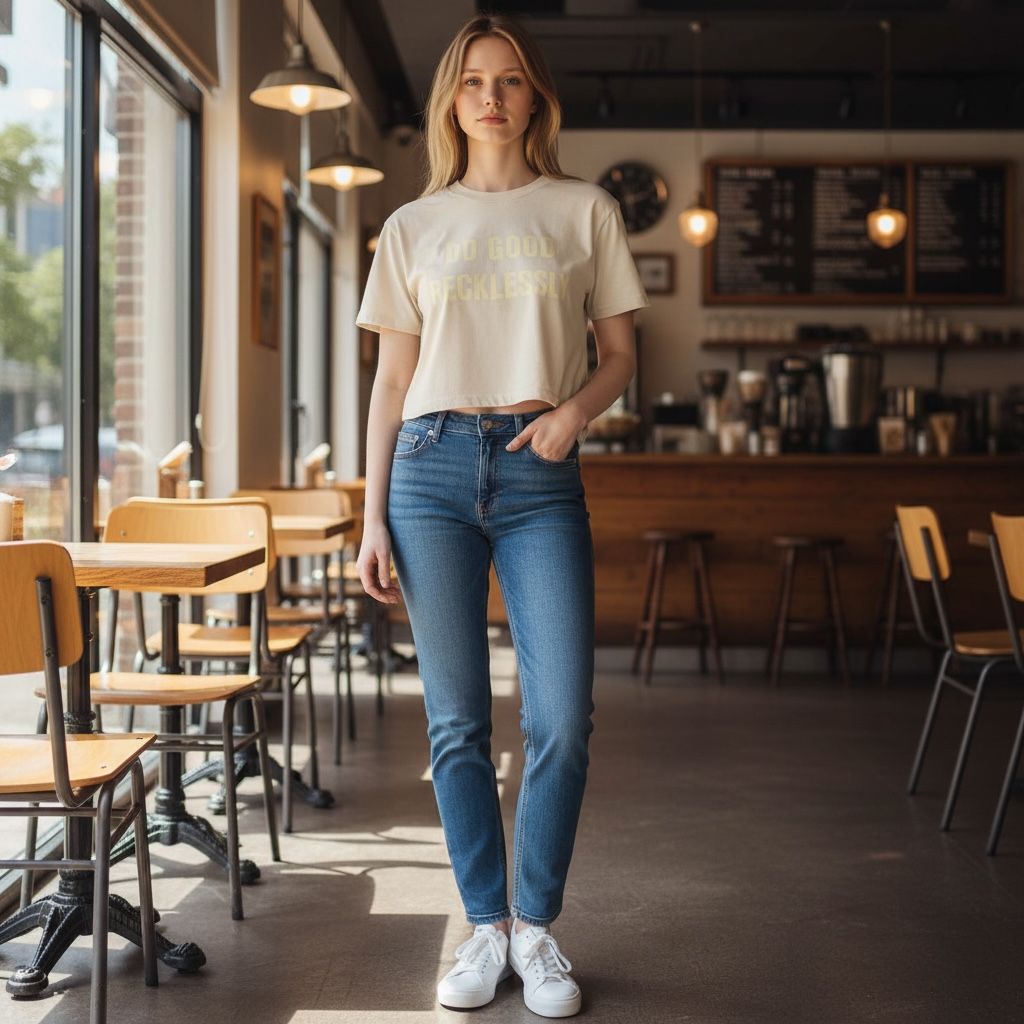 Soft, worn in, and effortless from the first wear. We moved the Do Good Recklessly design onto the AS Colour Heavy Faded Crop Tee because it perfectly matches the feel we wanted. Substantial without being stiff, vintage without trying too hard, and relaxed in all the right ways.