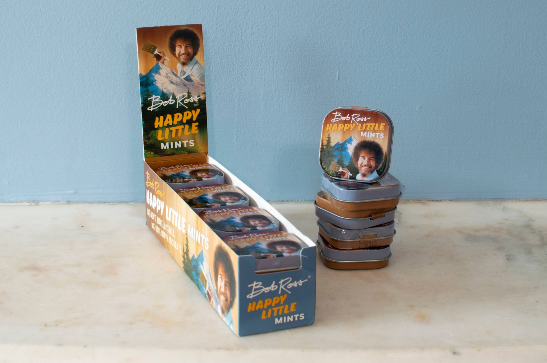 Talk to the tree, make friends with it. People might look at you a bit funny, but it's okay. Artists are allowed to be a bit different. Enjoy the cooling taste of mint, then break out the Titanium White and Phthalo Blue. Make some happy little clouds like the easygoing painter Bob Ross Peppermint; reusable mint tin measures 1.75 x 1.75 x .5