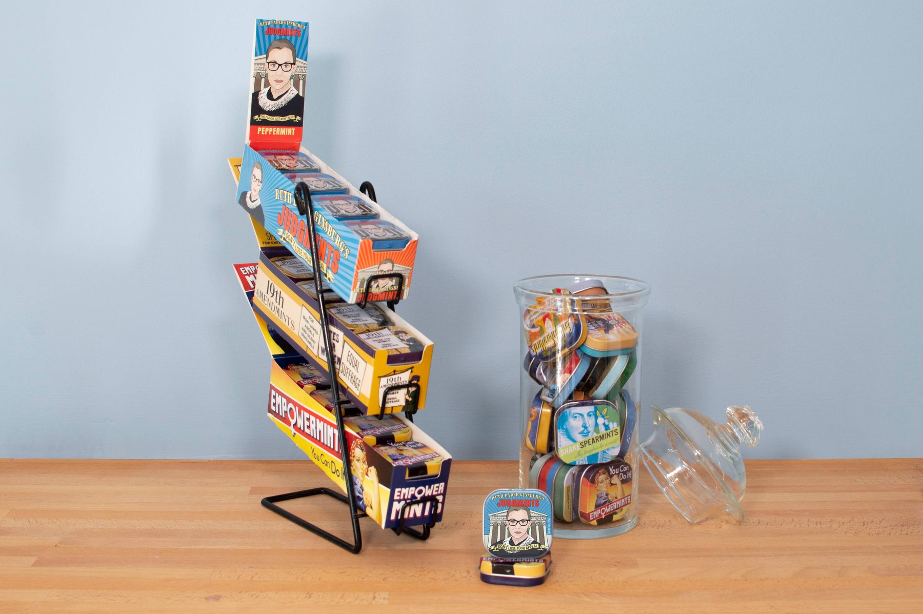 Oyez! Oyez! Oyez! All persons desiring breath that is Honorable are admonished to draw near and give their attention to Ruth Bader GInsburg, for these mints are Supreme! Keep one under your robe. Keep a spare in your chambers. Peppermint; reusable mint tin measures 1.75 x 1.75 x .5