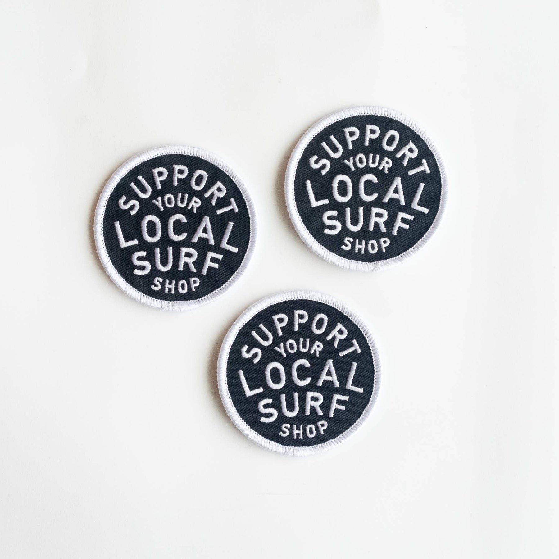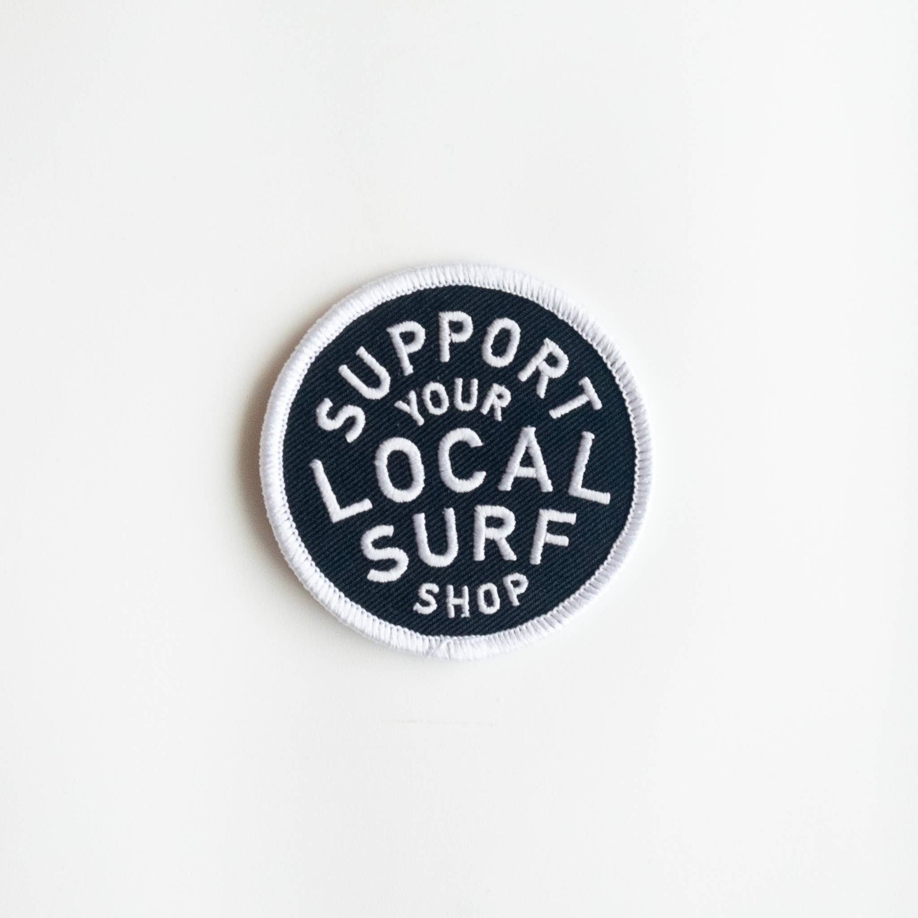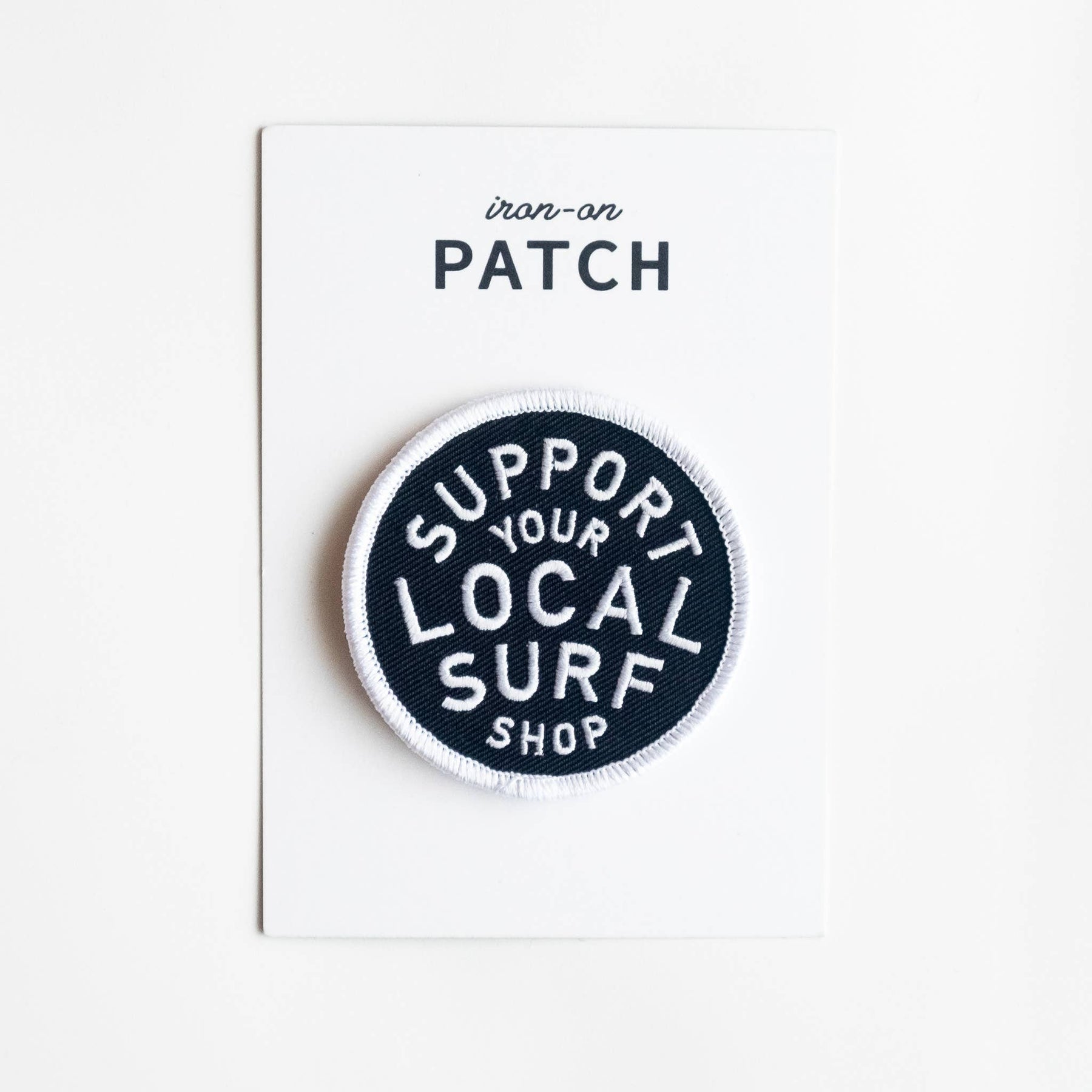 Show your love for the surf community with our "Support Your Local Surf Shop" embroidered patch! This 2.5-inch patch, featuring a bold design, is the perfect addition to your favorite jacket, hat, or backpack. Easy to apply with an iron, it's a great way to show off your coastal spirit and dedication to supporting local businesses. Whether you're a seasoned surfer or just love the beach vibe, this patch is a must-have accessory. Opt-in for the optional 5x3.5 backing card for a convenient in-store display. Every patch is Iron-on with or without the backing card. © Copyright Kamin and Sydney Tersieff, Union Made, 2024, All Rights Reserved. All images, designs, and lettering are copyrighted and cannot be stored, reproduced, or used without obtaining prior written consent from the owner.